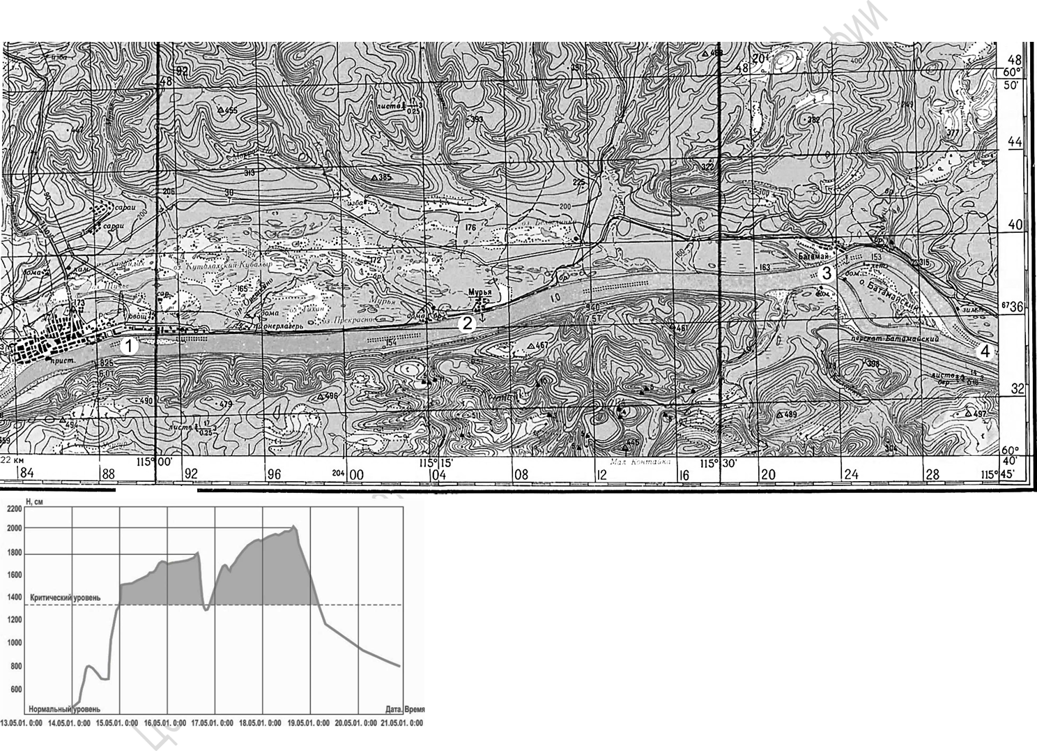 Оцените площадь затопления территории (включая русло реки) при максимальном
