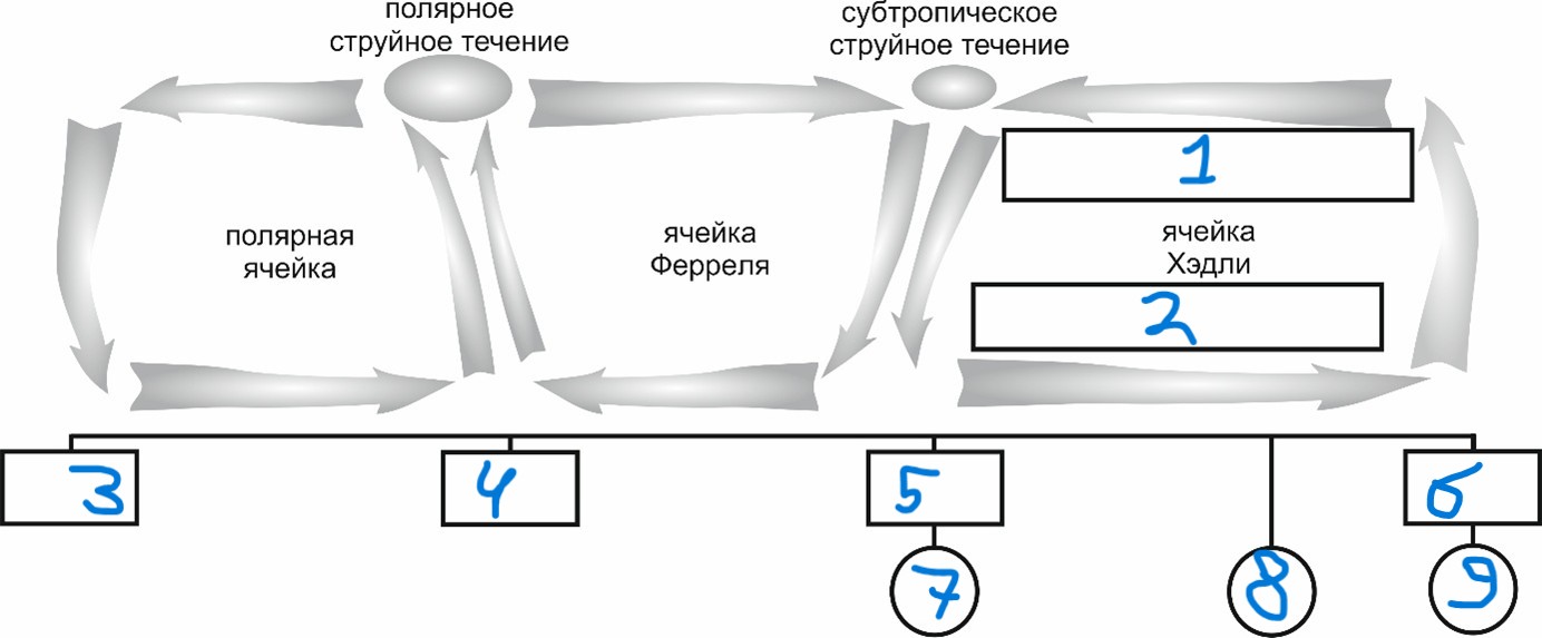 Подпишите названия ветров в верхней и нижней частях ячейки Хэдли.